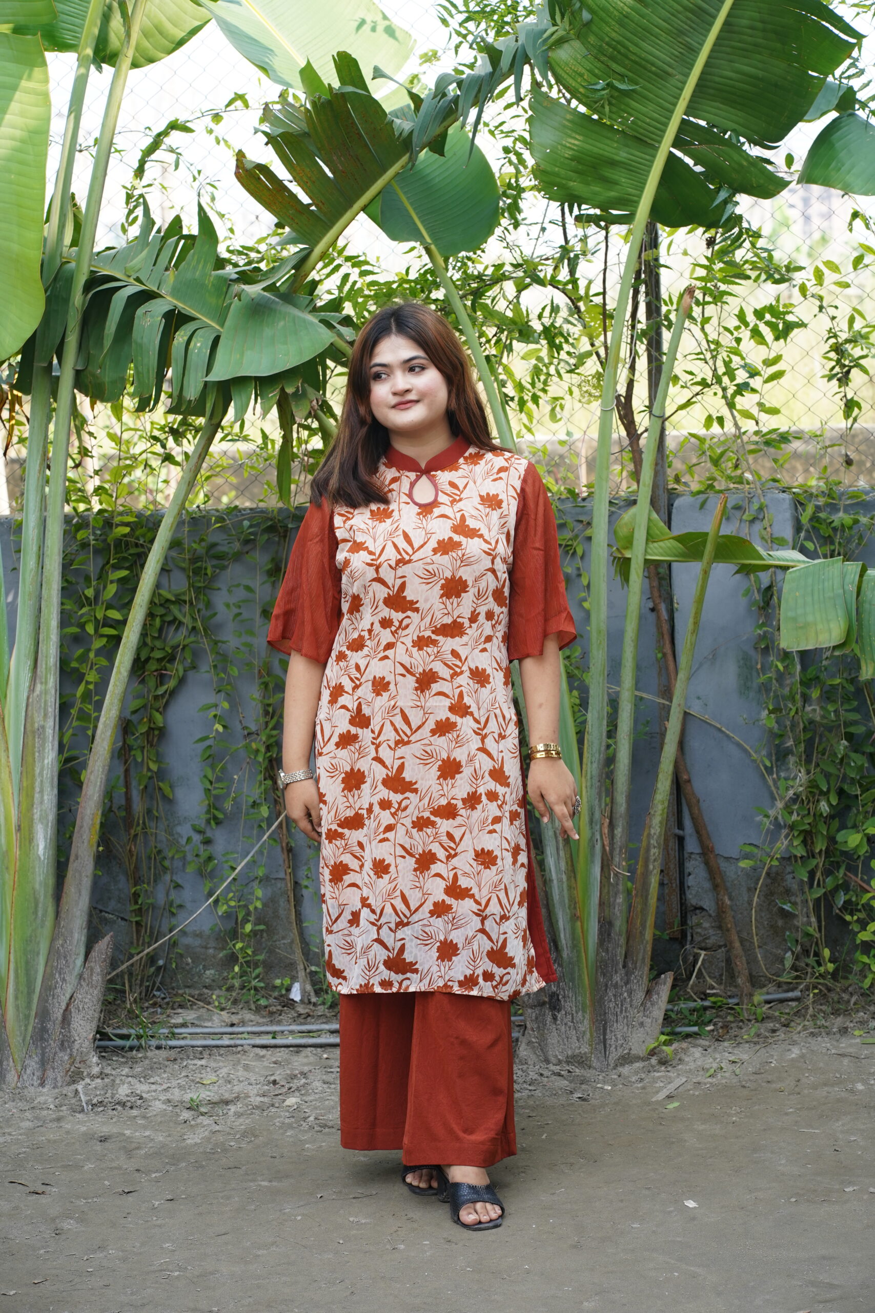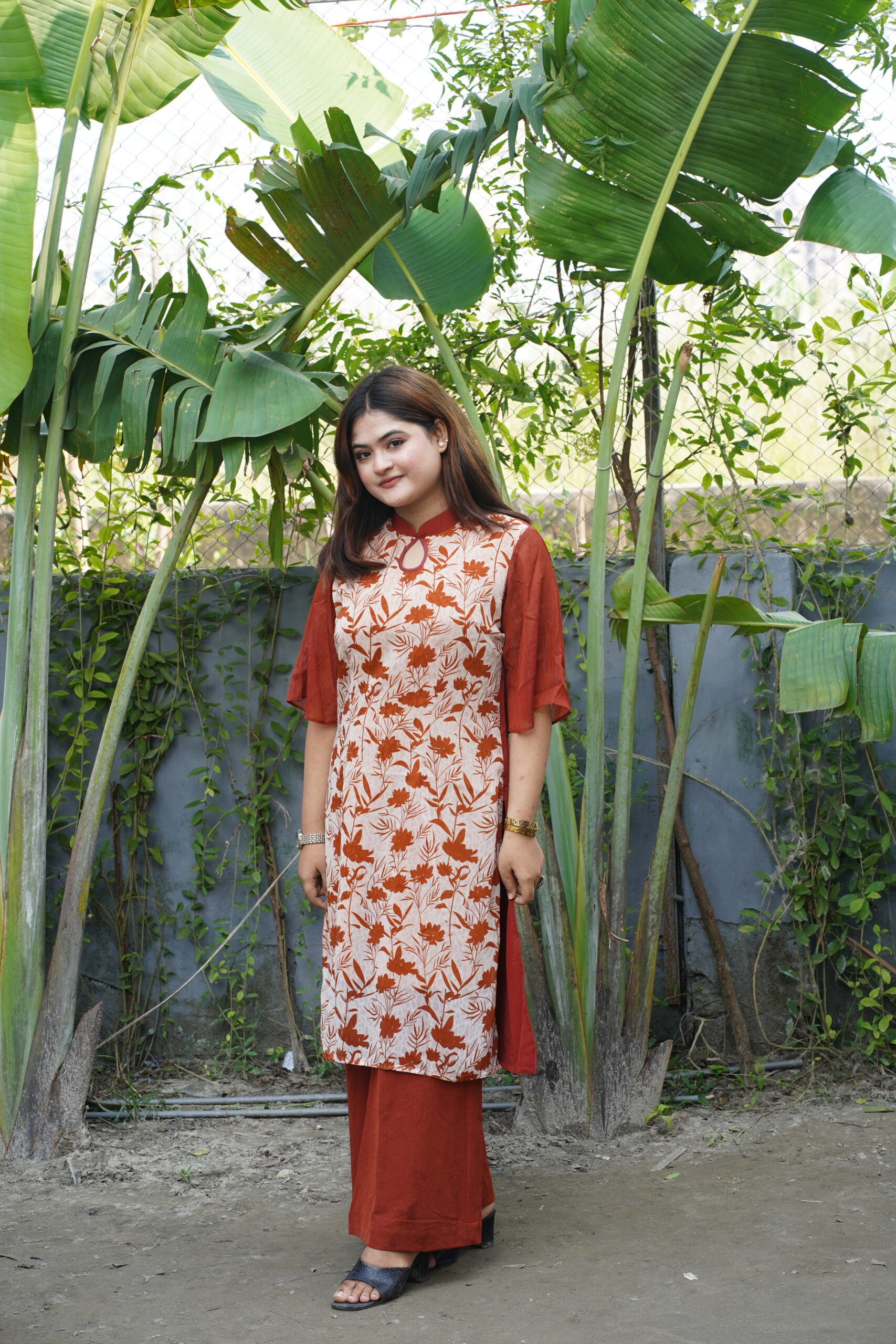 ** জামার সাথে কন্ট্রাস্ট কালার পিওর চায়না ভাংচুর ক্লথ।